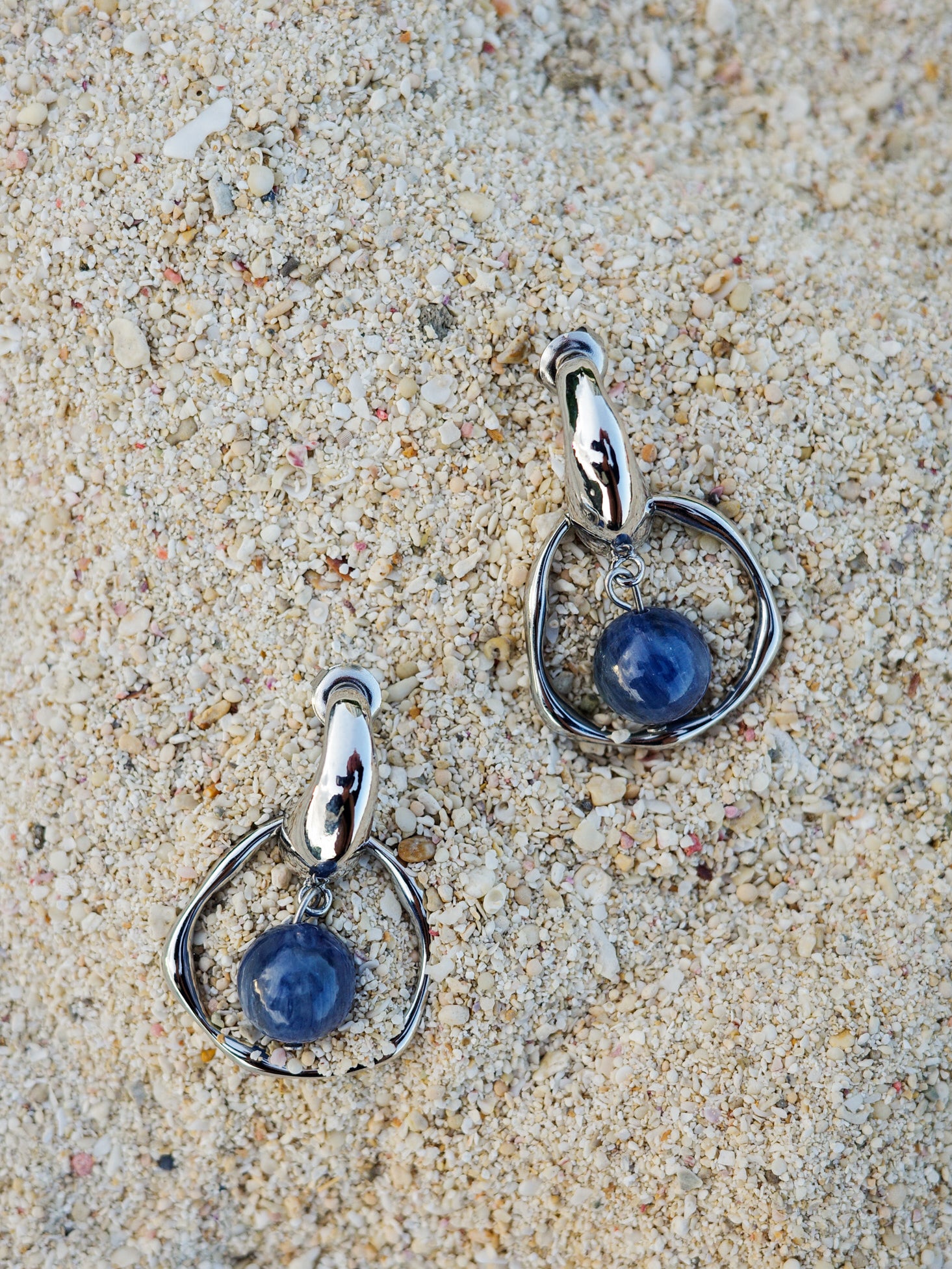 Crafted with natural kyanite, each pair of earrings carries the stone’s ethereal sheen and flowing lines, like whispers from a quiet ocean sky.